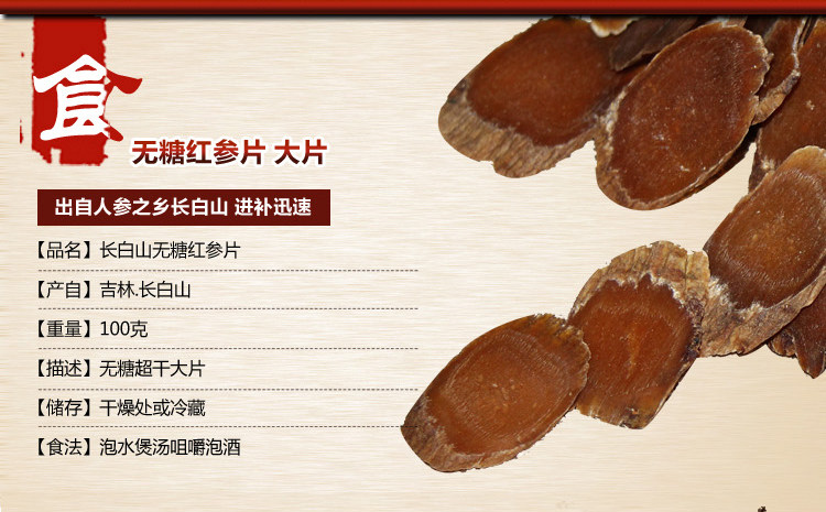 长白山无糖红参片 100克装