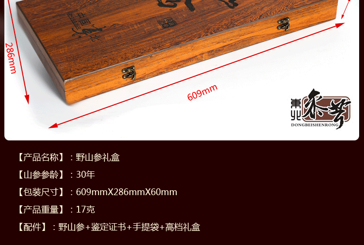 东北野山参礼盒 30年野山参 长白山人参礼盒 国检机构鉴定